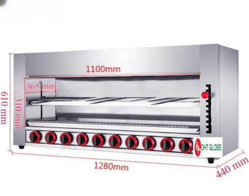 Lò nướng Salamander 10 họng gas DHT là lò nướng đa năng có thể nướng thịt, cá, hải sản hoặc các món nướng khác.