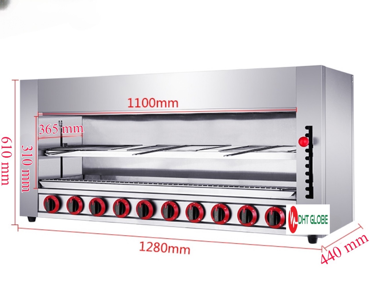 - Lò nướng salamander 10 họng gồm 10 họng gas, lò nướng có điều chỉnh nhiệt .