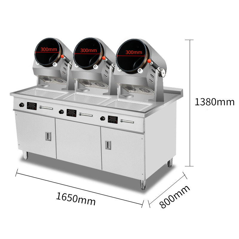 Với kích thước 440x530x810mm (DxRxC) máy rang cơm, xào rau, xào mì, xào miến dùng gas đơn có thể đặt lên trên mặt bàn để thuận tiện thao tác. Máy có thể điều chỉnh được tốc độ quay của nồi, điều chỉnh mức nhiệt và hẹn giờ chế biến, đảm bảo tiết kiệm thời gian, nhân lực cho đầu bếp.