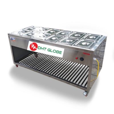 - Hệ thống làm nóng thức ăn gồm có thanh nhiệt với chức năng đun sôi nước tích hợp với tủ điện. Phần điều khiển của tủ được thiết kế riêng phía bên ngoài nên không ảnh hưởng tới việc hoạt động mà lại rất thuận tiện khi điều khiển nhiệt độ riêng cho mỗi loại thực phẩm và có độ an toàn cao.