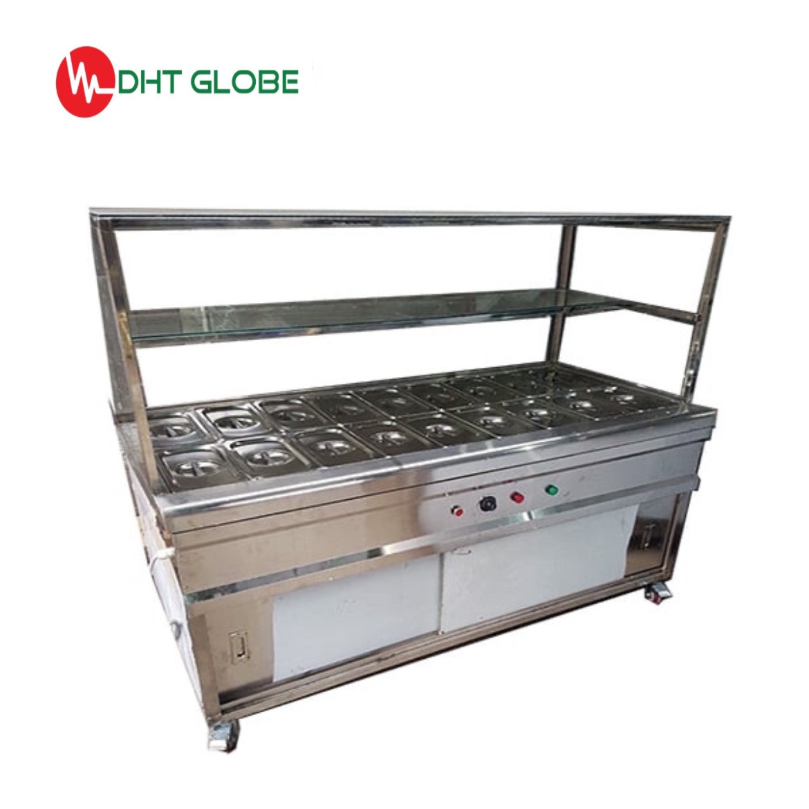 - Hệ thống làm nóng thức ăn gồm có thanh nhiệt với chức năng đun sôi nước tích hợp với tủ điện. Phần điều khiển của tủ được thiết kế riêng phía bên ngoài nên không ảnh hưởng tới việc hoạt động mà lại rất thuận tiện khi điều khiển nhiệt độ riêng cho mỗi loại thực phẩm và có độ an toàn cao.