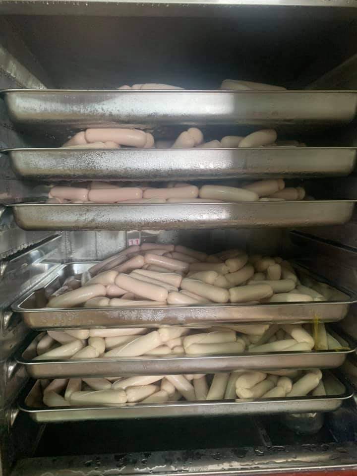 Hấp thịt và giò chả: Mỗi khay hấp từ 5-8 kg giò, tủ hấp được từ 120- 180 kg giò trong thời gian khoảng 75 phút hoặc tăng giảm hơn một vài phút tùy tình hình thực tiễn. Nếu kích thước khối giò lớn bạn có thể rút bớt 1 khay, tức tủ 10 khay chỉ dùng 5 khay điều này giúp giò hấp nhanh chín hơn và đảm bảo chín hoàn toàn từ trong ra ngoài ngay cả cả khối giò có khổ kích thước lớn.