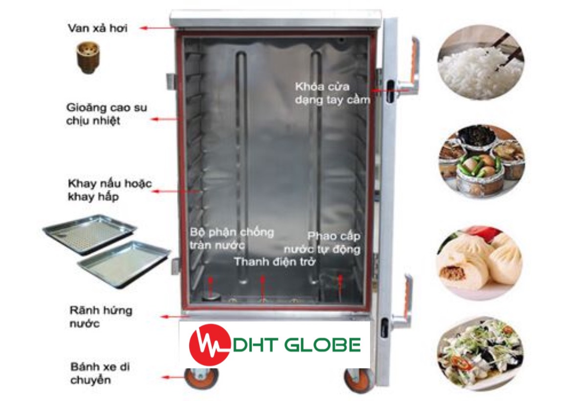 - Tủ nấu cơm dùng nhiên liệu điện an toàn – sạch sẽ – tiện lợi.